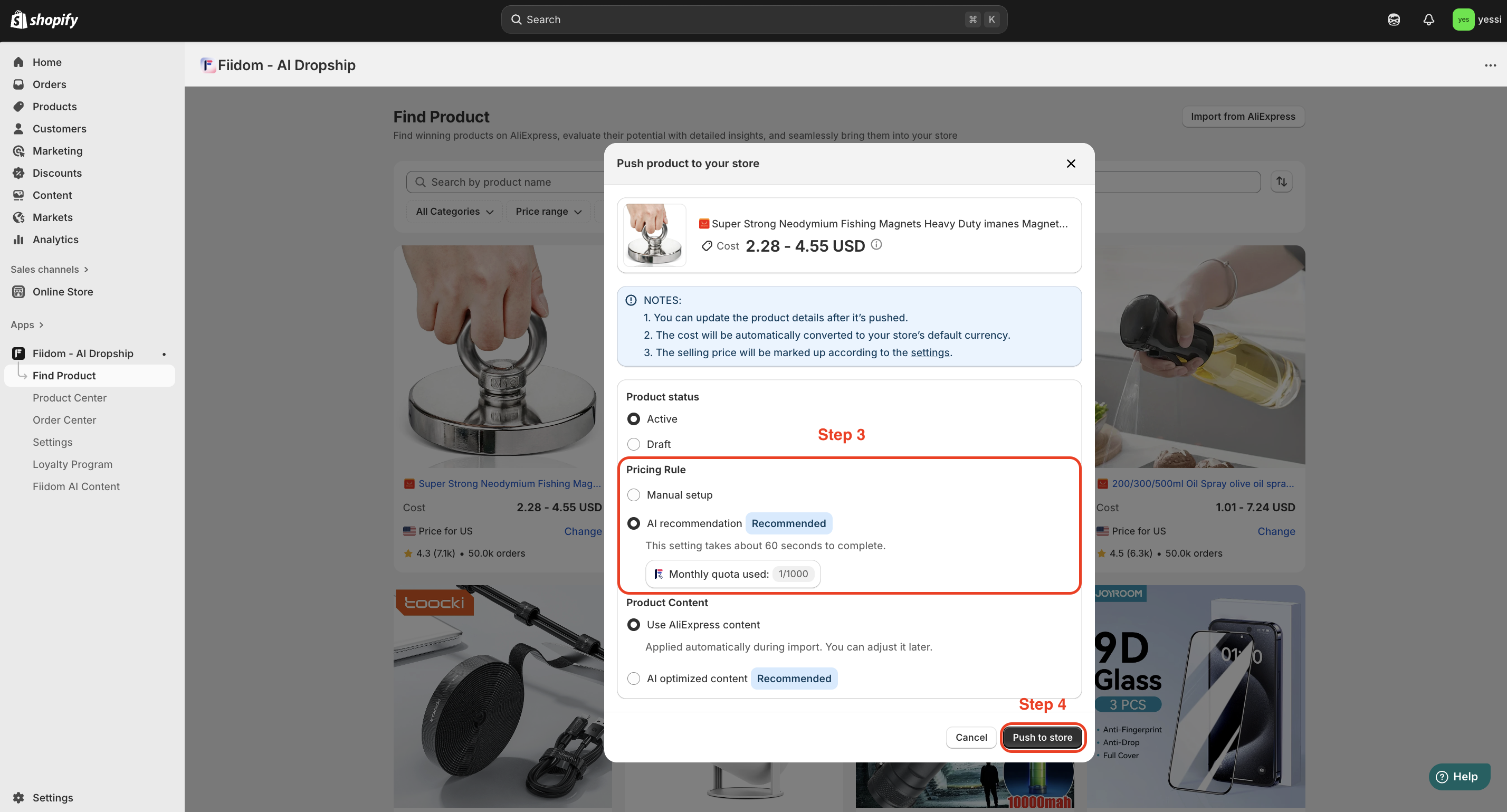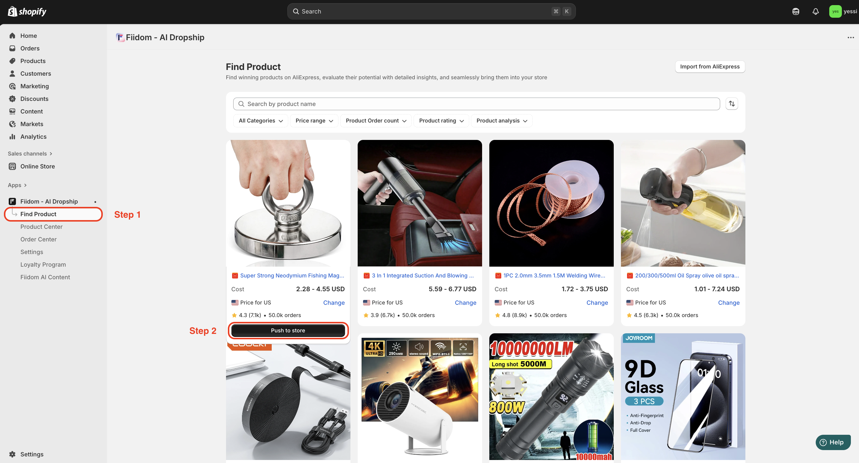 2. Hover over a specific product card > Click Push to store.