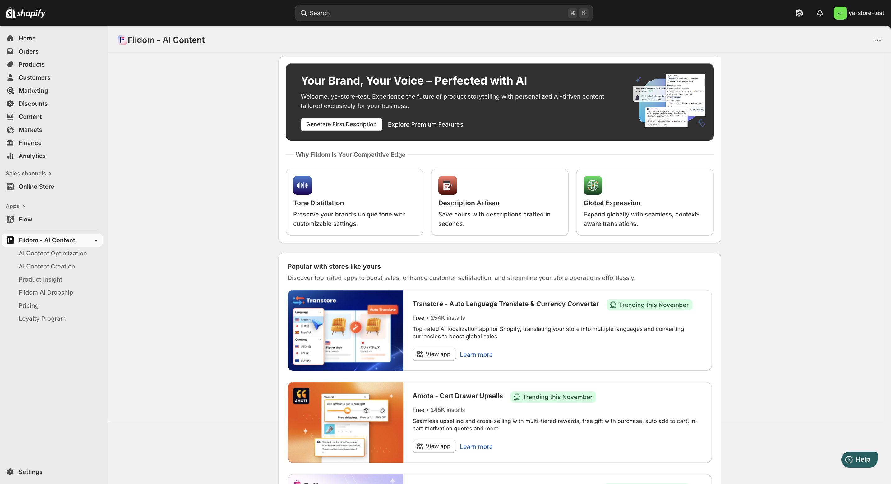 Fiidom AI Content is an AI-powered marketing and content solution designed for Shopify store owners. It helps merchants automatically generate and optimize existing product descriptions, blog posts, emails, ad copy, and social media content to improve SEO, clarity, and conversions.