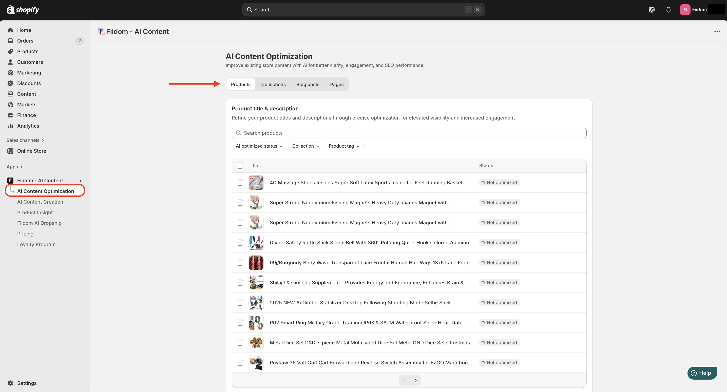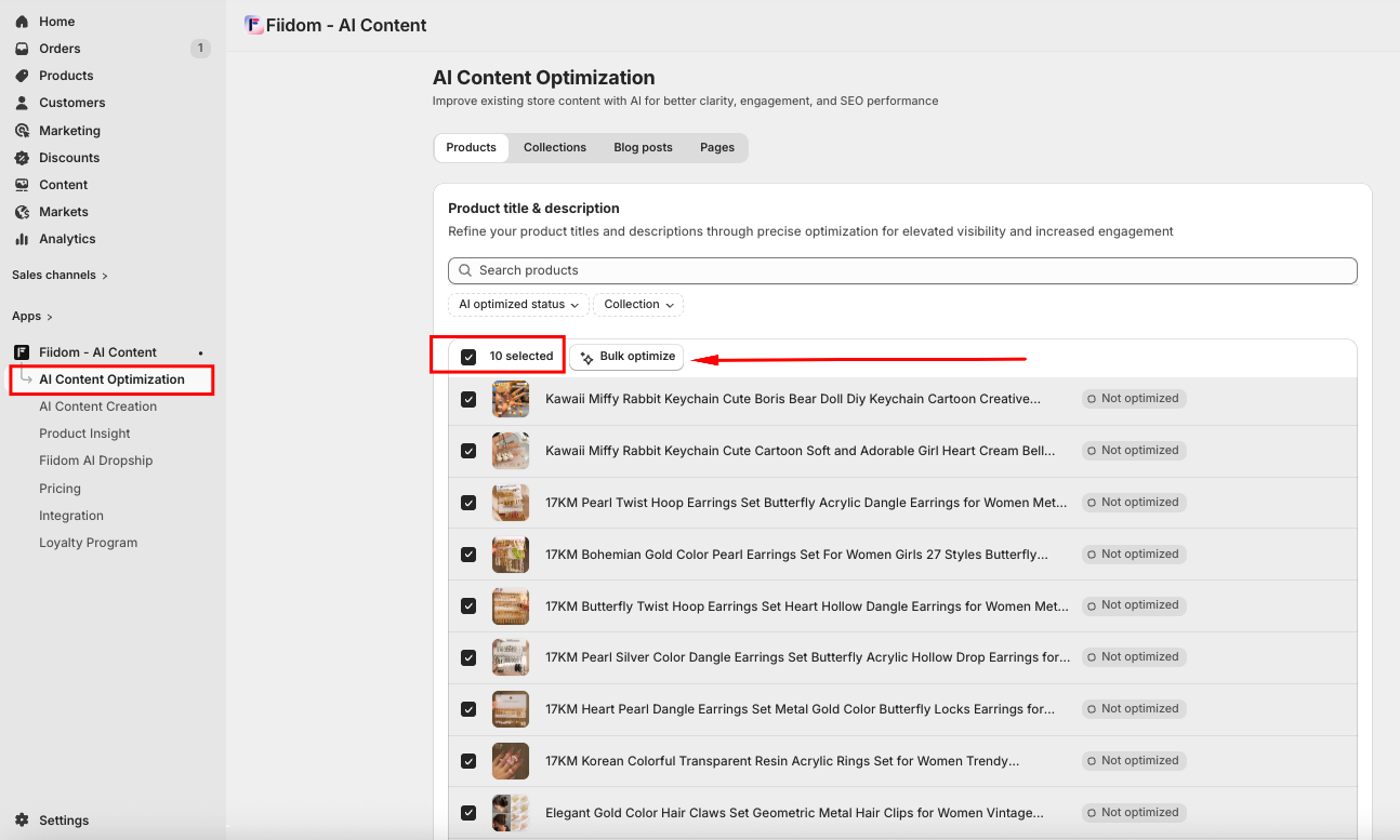 - If you need to optimize more than one item at a time, Fiidom’s AI Bulk Optimization lets you update multiple resources all at once.