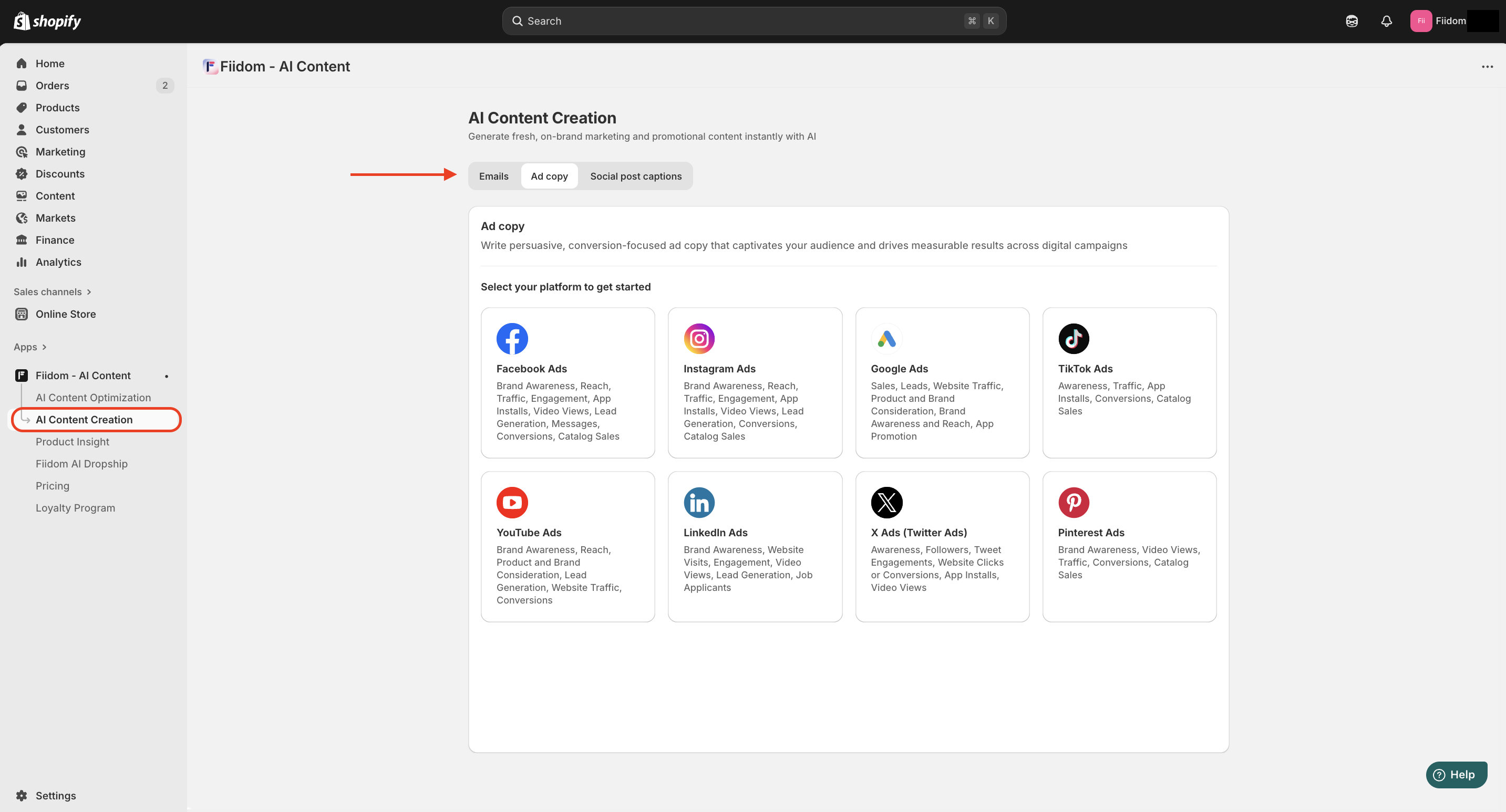 When you’re ready to market your store, Fiidom also makes it effortless to generate new marketing and promotional content that fits your brand voice: