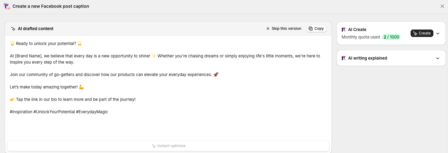 2. Generate fresh, on-brand marketing content with AI Content Creation