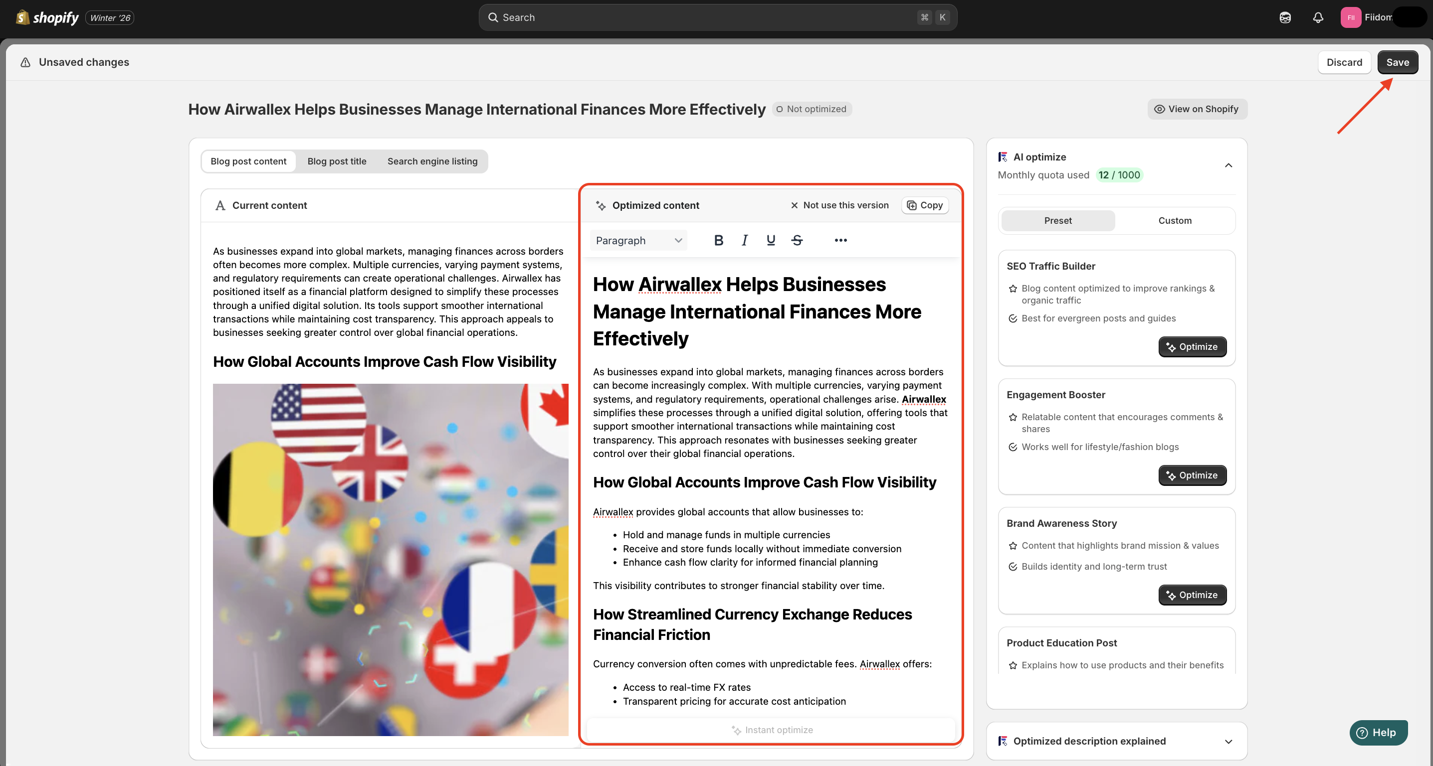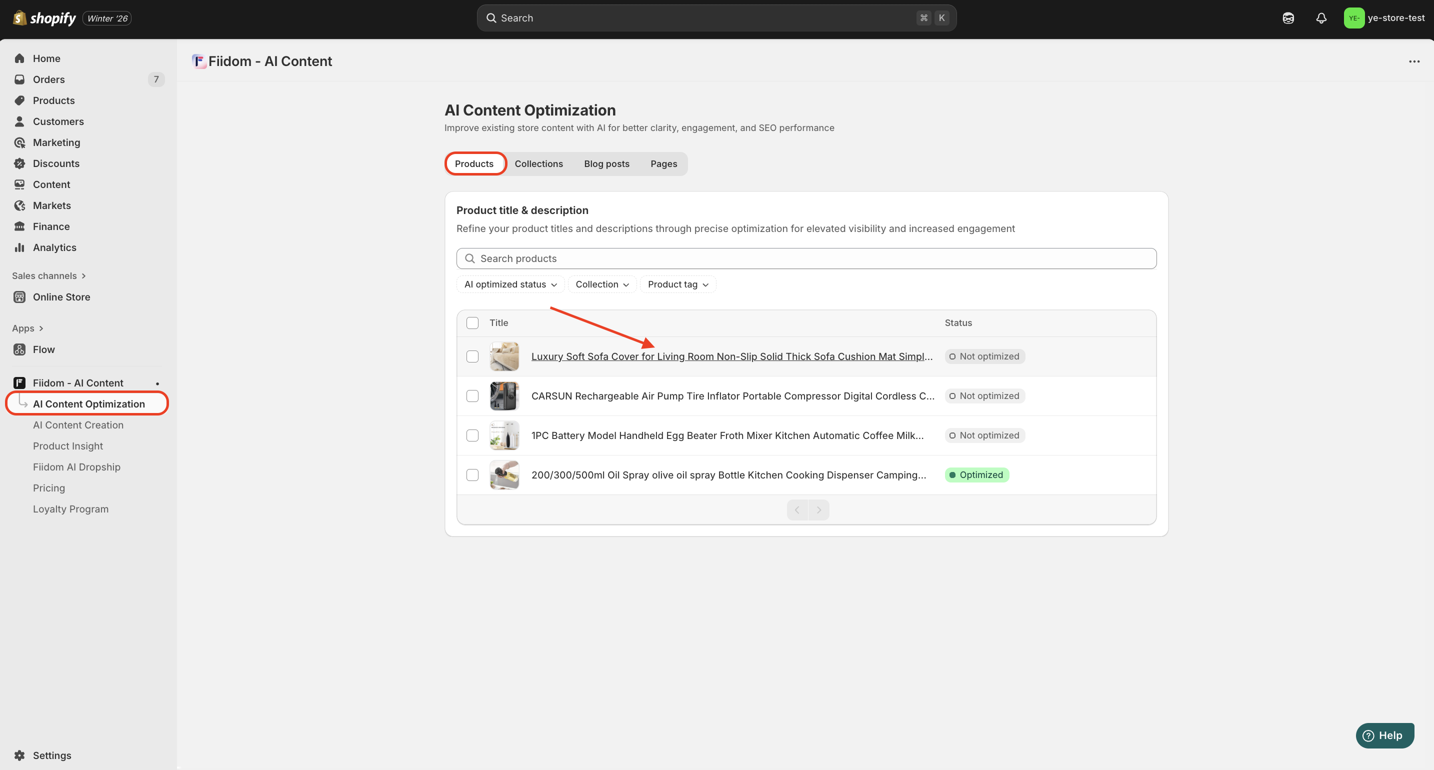 Fiidom’s AI Content Optimization feature helps you transform existing content into SEO-friendly, high-converting copy across products, collections, blog posts, and pages.