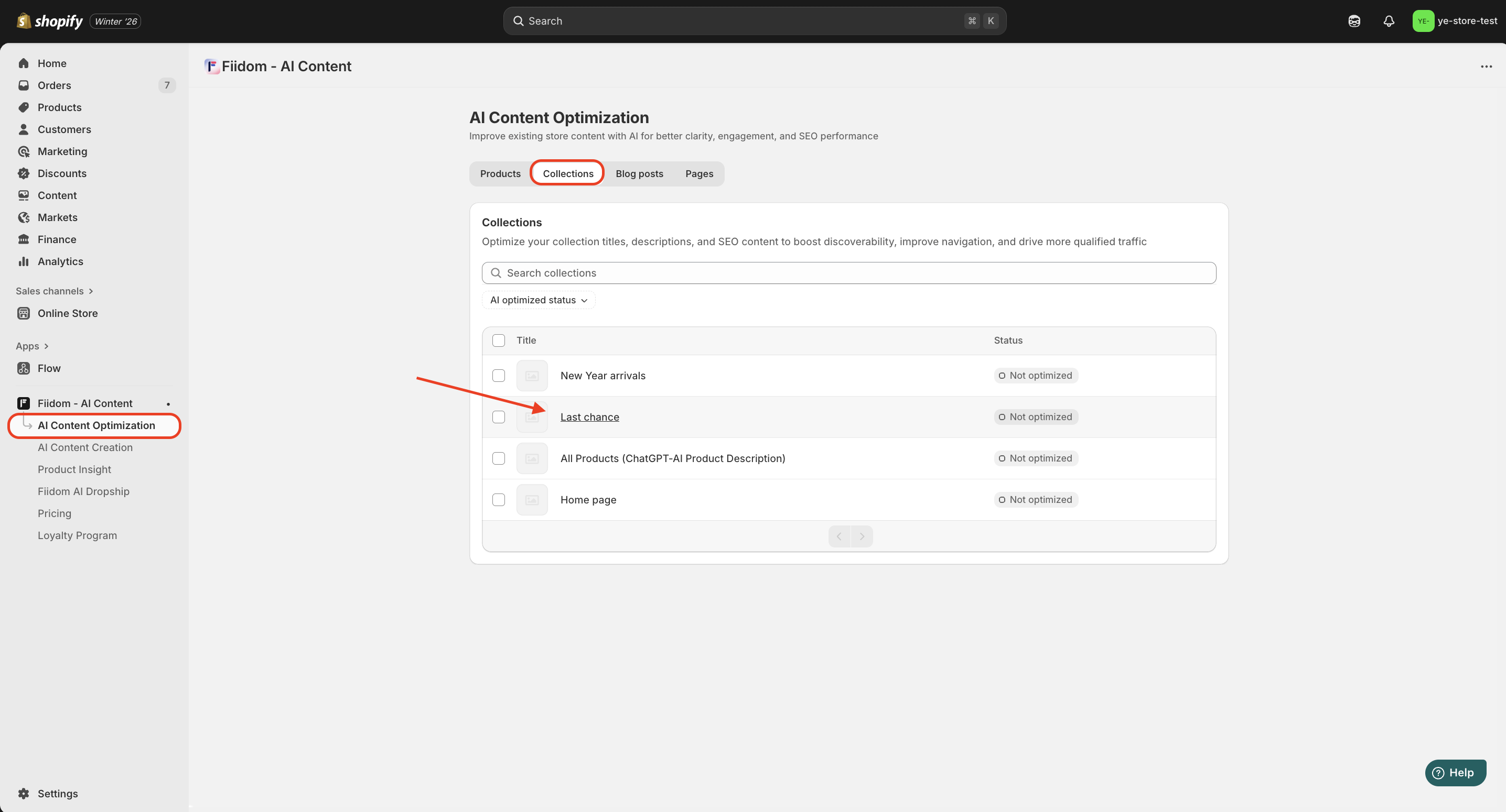 2. Click Collections > Select a collection page that needs improvement.