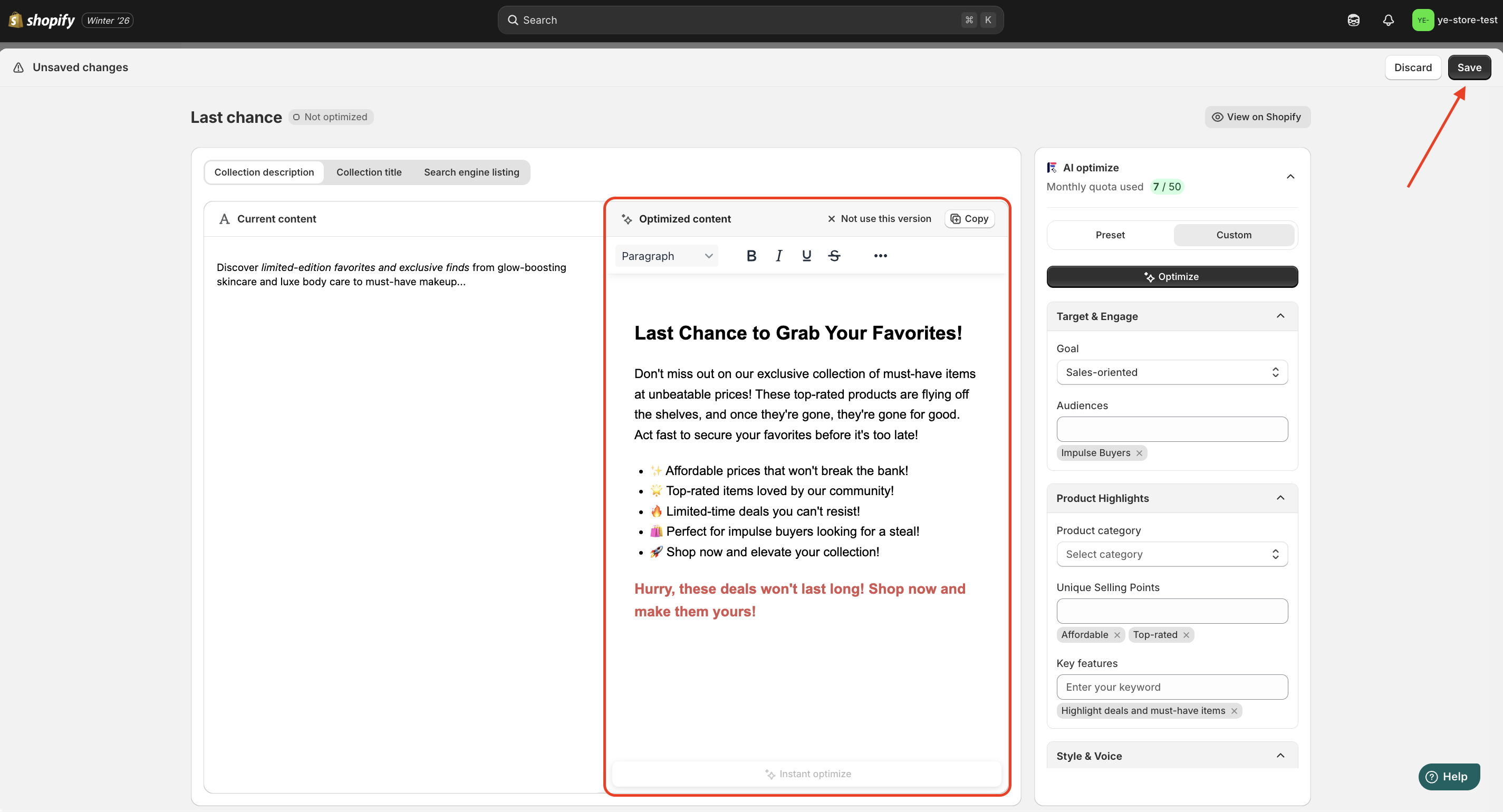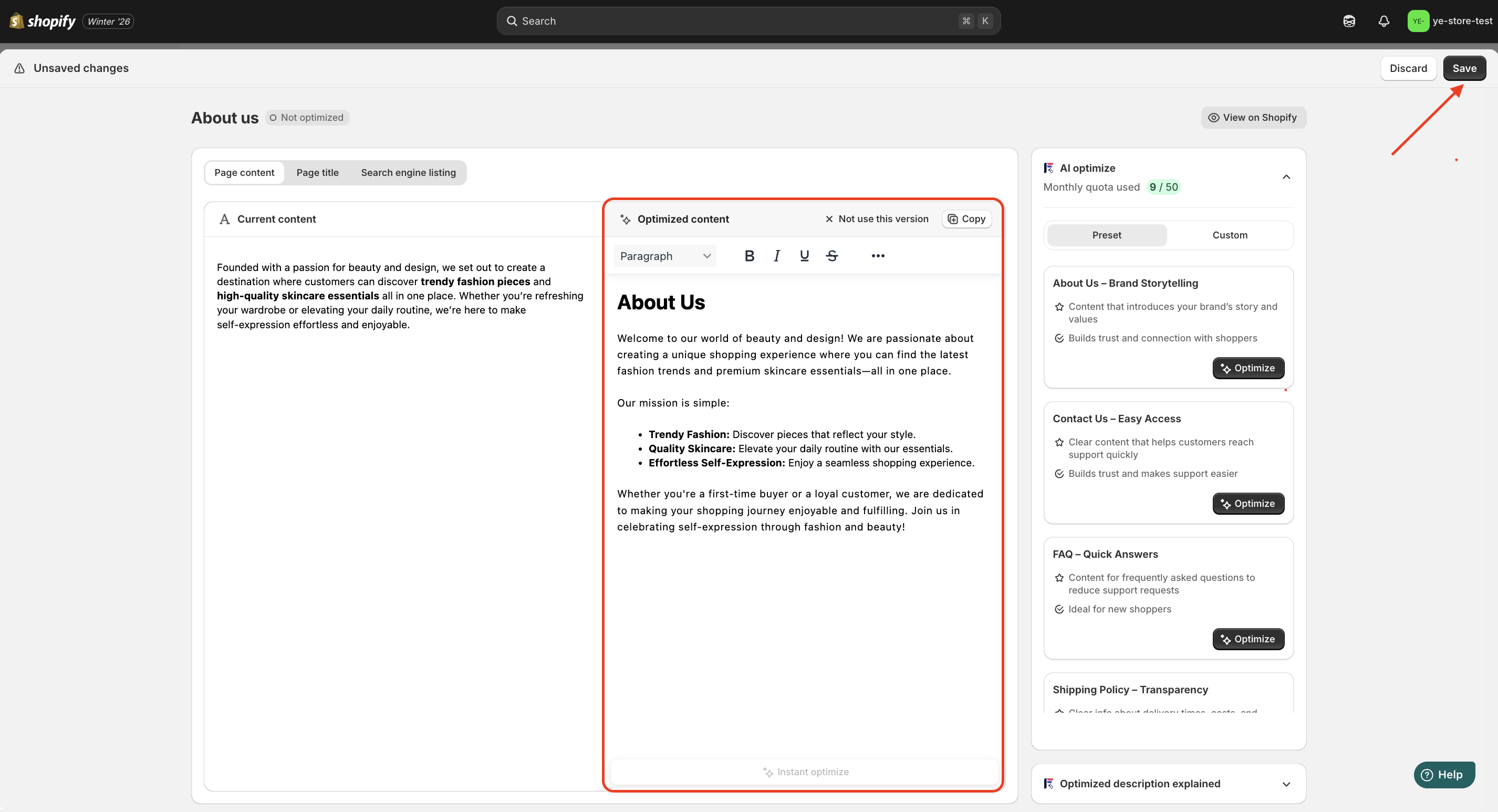 4. Review the AI-generated content carefully > Click Save for new changes.